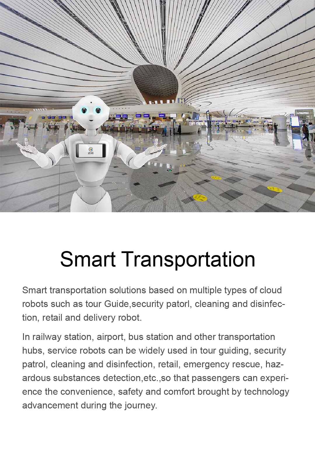 and smart robots such as medical consultation, security surveillance, cleaning and disinfection, and